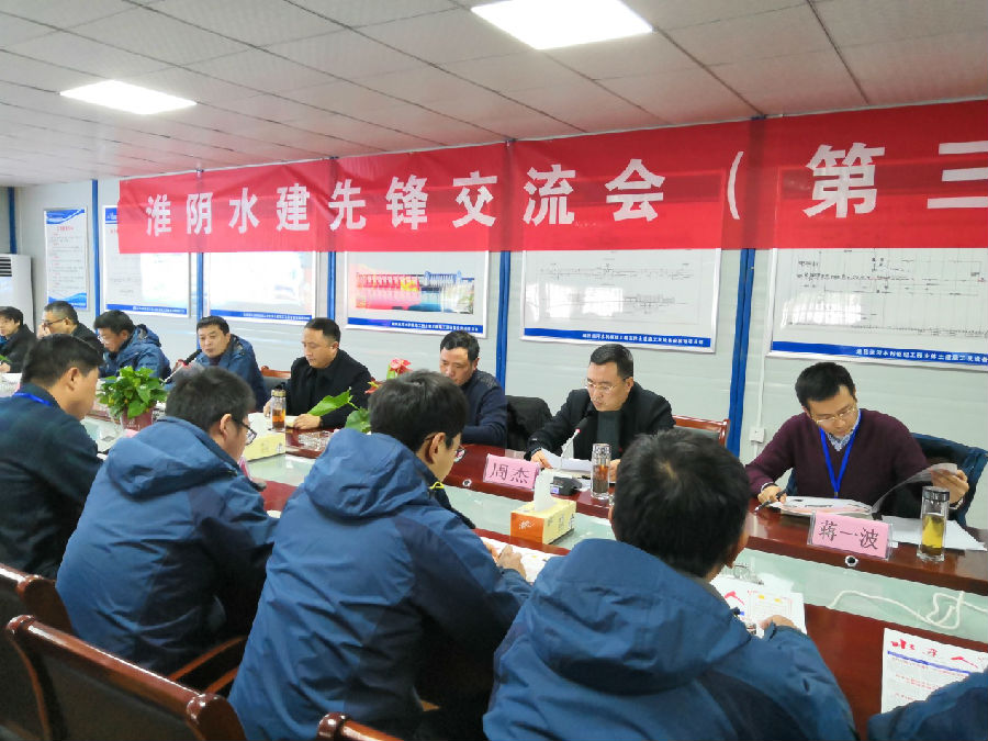 2018年12月30日下午,第三期“淮陰水建先鋒交流會(huì)”在南通通呂運(yùn)河樞紐項(xiàng)目部隆重舉行。公司黨委班子成員、五個(gè)支部部分黨員、2018年入黨的預(yù)備黨員、2018年入黨積極分子代表、青年員工代表、以及項(xiàng)目部管理人員參加了會(huì)議,通呂運(yùn)河項(xiàng)目建設(shè)處李關(guān)華書記應(yīng)邀出席會(huì)議并作講話。