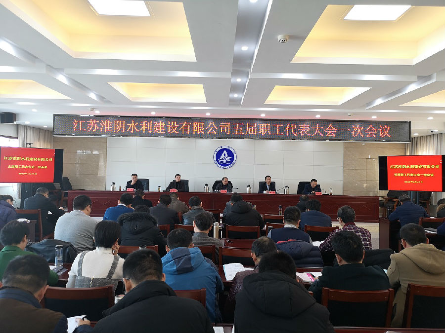 2019年1月27日下午,江蘇淮陰水利建設(shè)有限公司五屆職工代表大會(huì)第一次會(huì)議在水利大廈14樓會(huì)議室召開,公司職工代表共計(jì)80余人參加會(huì)議。會(huì)議由公司紀(jì)委書記、工會(huì)主席周杰主持,集團(tuán)黨委委員、副總經(jīng)理李杰、集團(tuán)工會(huì)專職副主席朱剛蒞臨會(huì)議并作重要講話。