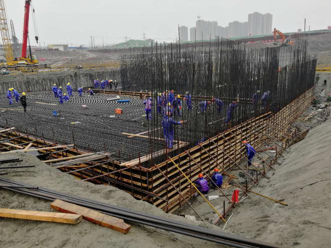 因為水利工程的特殊性,通呂運河水利樞紐工程必須在5月底主汛期來臨前完成水下部分施工,實現(xiàn)通水目標,搶抓工期成為貫穿整個施工過程的關鍵詞。自開工以來,現(xiàn)場最多的天氣便是下雨,據(jù)統(tǒng)計,自12月以來,雨水天氣達51天。為了確保通水目標按期實現(xiàn),以及年底前完成主體工程計劃任務,在連續(xù)下雨、前期因清淤困難減緩了施工進度等不利情況下,自主體基坑開挖后,項目部便開始積極組織工人加班加點,沒有過絲毫的放松和懈怠,在參建各方的一致努力下,最終將原計劃于2月25日澆筑的泵站底板提前到了2月16日實施,從而為后續(xù)施工爭取到了更多的機動時間。目前節(jié)制閘1#、2#、3#底板及泵站已澆筑完成,待泵站工程搶出地面后,最后澆筑節(jié)制閘4#底板,進而完成主體基面以下部分施工。目前現(xiàn)場施工人員接近三百人,我們搶抓有利天氣,有序進行土方、管樁、水泥攪拌樁、主體結構鋼筋、模板等平行施工作業(yè),工作面全面展開,后續(xù)總體施工進度已處于可控狀態(tài),我們向著順利完成水下驗收的目標又邁出了堅實有力的一步。
